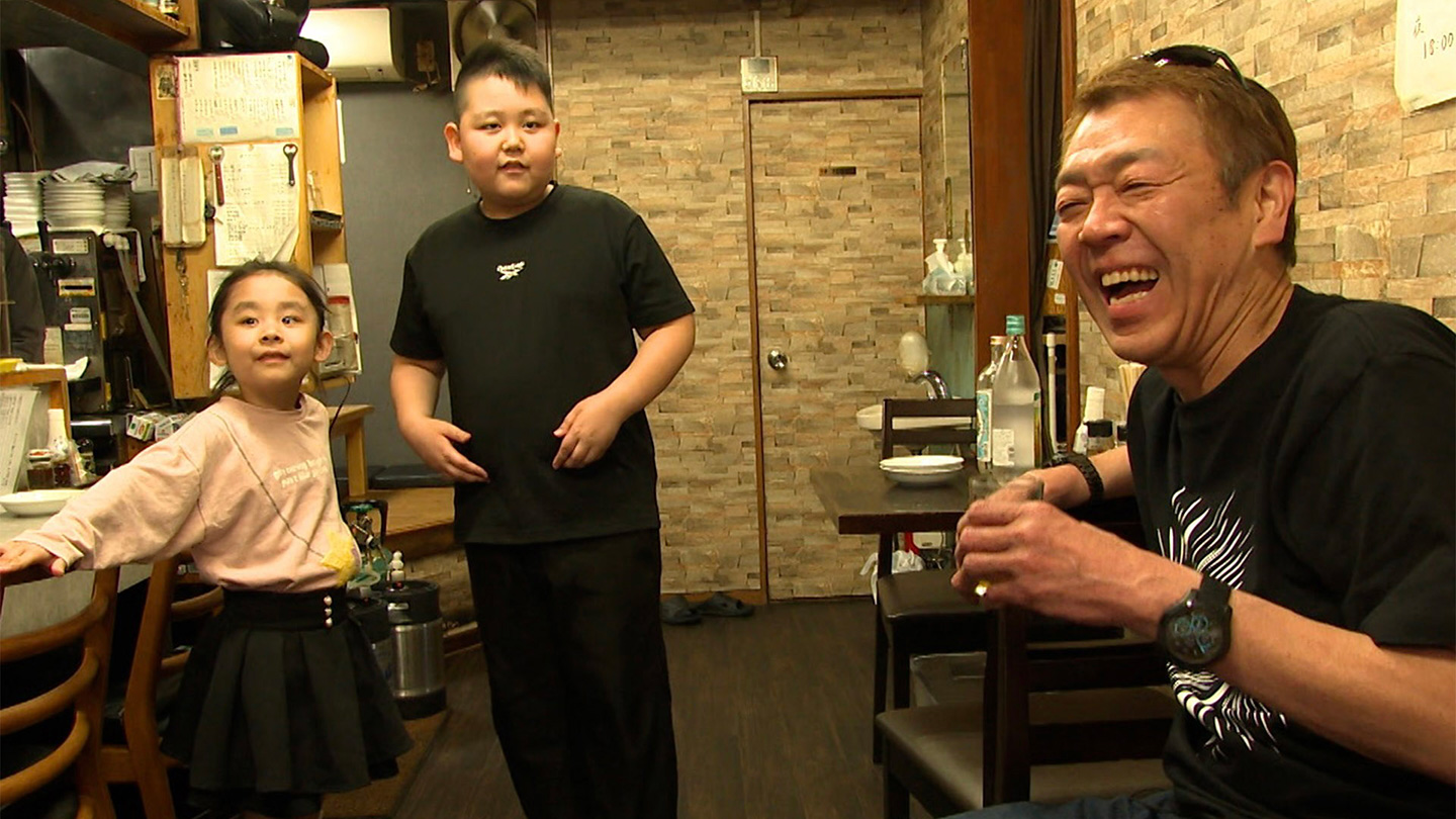 1軒目は駅南口にある商業ビル地下1F、食品街を抜けた先に店を構える「古久家藤沢店」。青果や鮮魚の香りが漂うフロアに、玉ちゃんの期待も高まります。そして店の前にはすでに行列。市民に愛されている様子が伝わってきます。まずは瓶ビールで喉を潤し「三点盛り」を。チャーシューは5日間タレに漬け込み、専用の釜で吊し焼きした自家製。さらに「エビのワンタンスープ」を堪能。中締めは、年配の常連客が“自分へのご褒美”にと頼む名物「五目焼きそば」。玉ちゃんはそのアタマを。イカや煮卵、そしてエビ天まで。8種類の具材が並ぶ贅沢な一皿です。