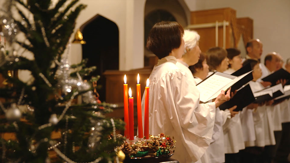 夜の街へ繰り出すと・・教会では聖歌が響き渡っていました。
