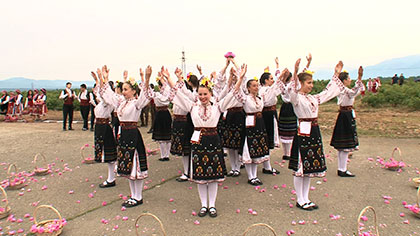 バラの栽培が盛んなブルガリア中央部のトラキア地方。毎年6月の初旬に、バラの収穫を祝う「バラ祭り」が開催され、人々は手を取り合い、列や輪になって伝統舞踊の「ホロ」を踊ります。